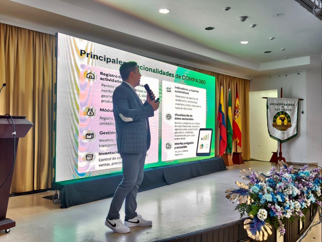 La exposición permitió dar a conocer a productores y ganaderos las funcionalidades y beneficios de COMPA360, una aplicación gratuita diseñada para apoyar la administración eficiente de fincas, el registro de datos productivos y económicos, así como la generación de reportes automáticos que facilitan la toma de decisiones y el acceso a beneficios sectoriales.